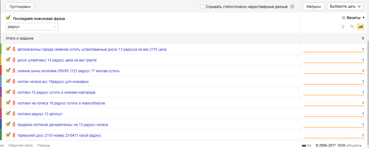 Статистика по ключевым запросам, использованным в мае (позиции сняты в августе 2017 г.) Статистика по ключевым запросам, использованным в июне (позиции сняты в августе 2017 г.) Примеры НЧ запросов, по которым пользователи приходят на сайт из поисковиков Обратите внимание на глубину просмотра и время на сайте: по каждому НЧ запросу переходов немного, но они качественные, с высоким шансом монетизации лида. Поскольку это низкочастотники, мы стараемся собрать их по максимуму.